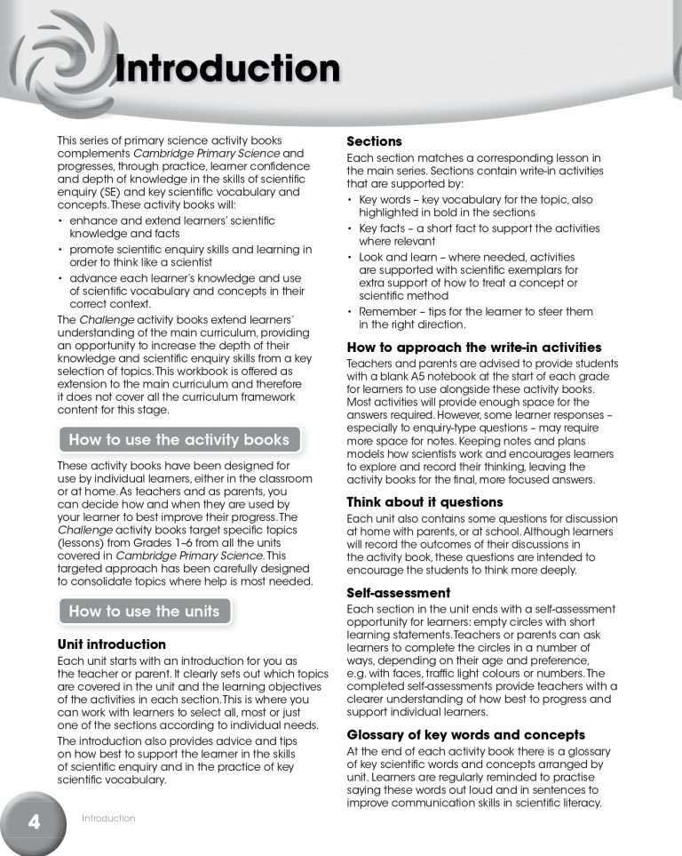 The Challenge and Skills Builders are differentiated activity books to be used alongside the Cambridge Primary Science course.